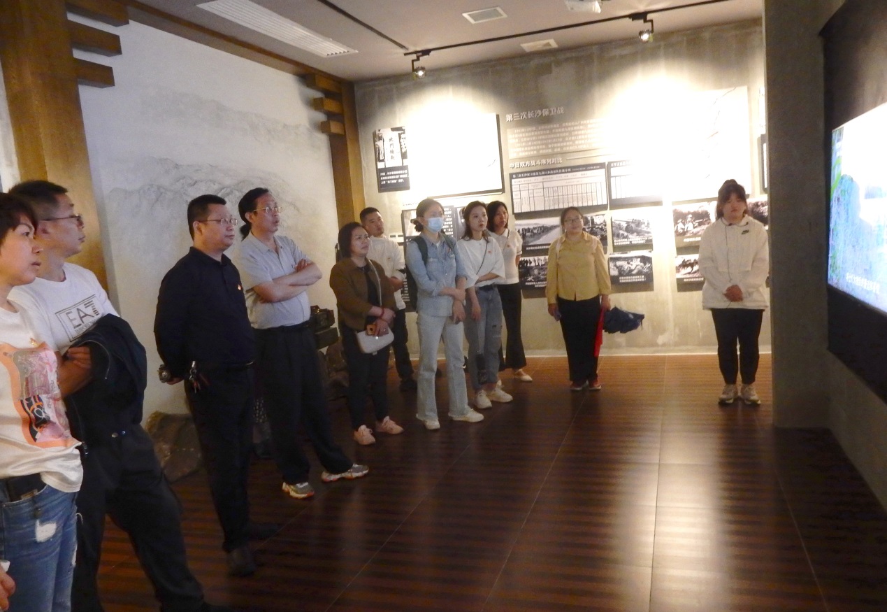 随后,在影珠山抗战史实陈列馆,党员们通过图片、多媒体演示,实物陈列,了解长沙会战史实,并实地参观了58军指挥部旧址、腰子坡战场旧址、战壕掩体等当年遗址,仿佛又看到了烽火连天年代里中国军民英勇抗战的不屈身影。