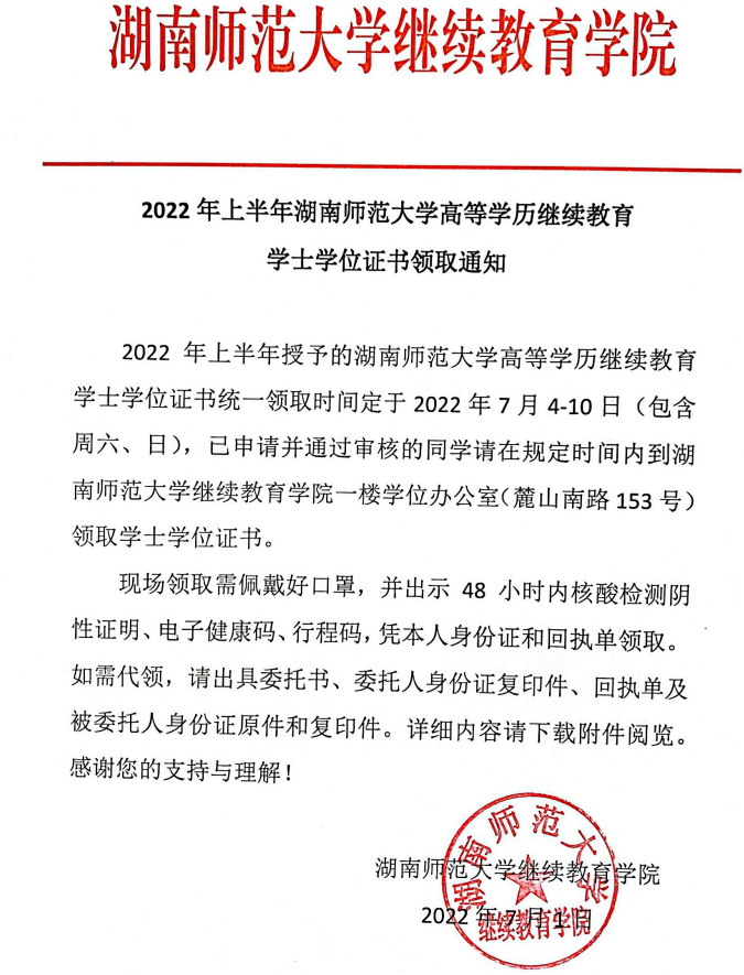 2022年上半年beat365手机版官网入口高等学历继续教育学士学位证书领取通知