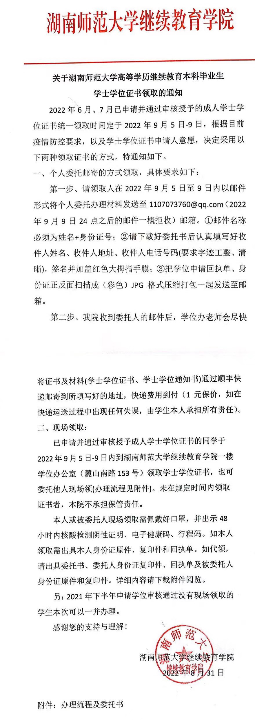 关于beat365手机版官网入口高等学历继续教育本科毕业生学士学位证书领取的通知