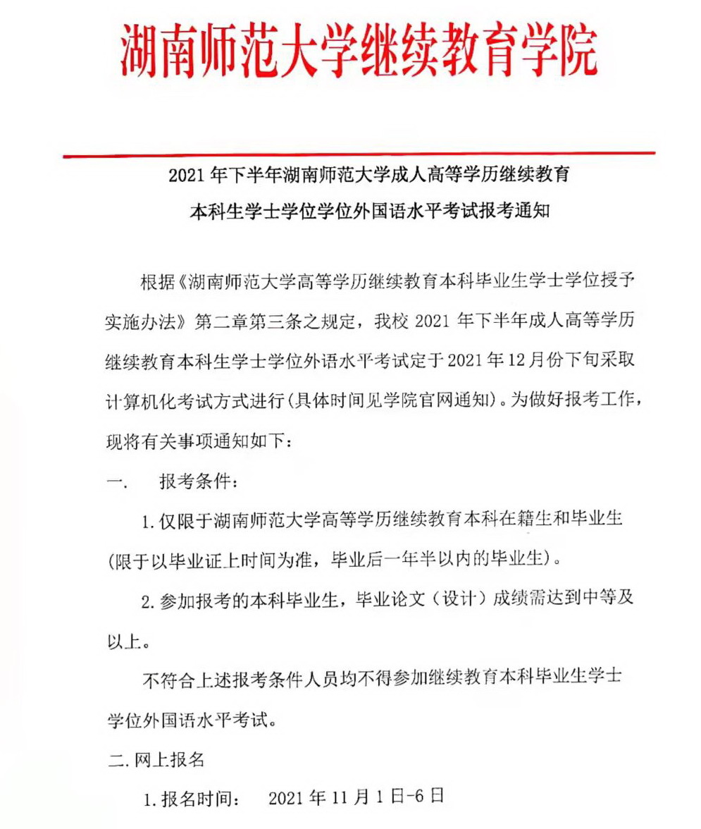 2021年下半年beat365手机版官网入口成人高等学历继续教育本科生学士学位外国语水平考试报考通知