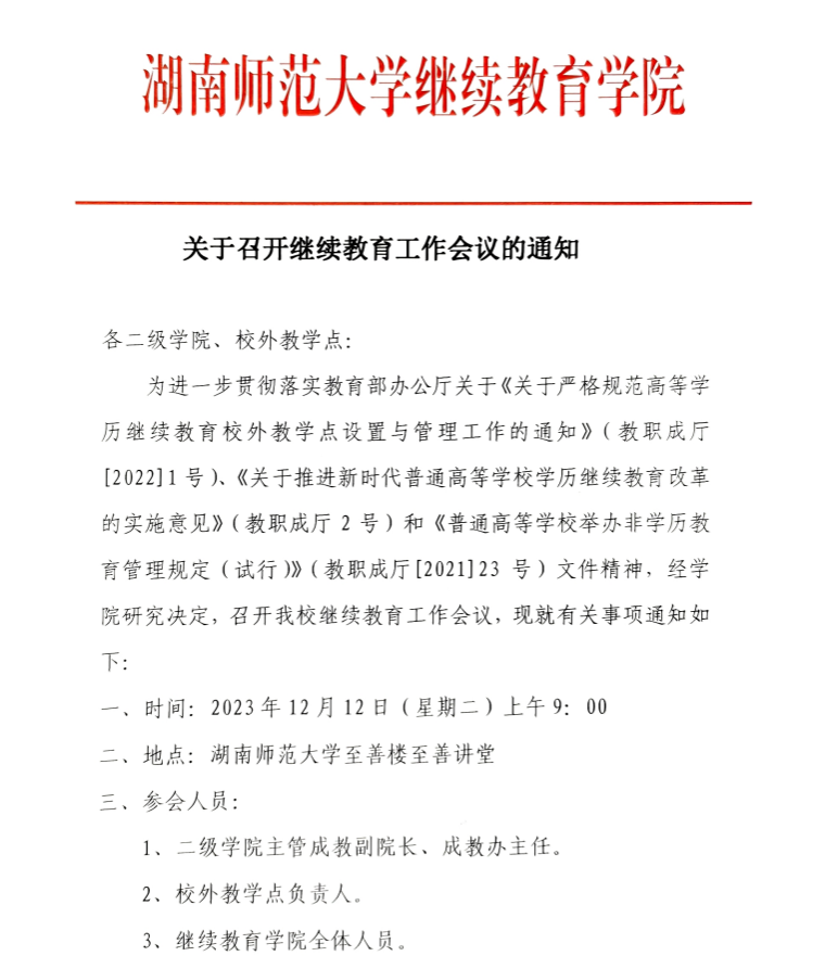 关于召开继续教育工作会议的通知