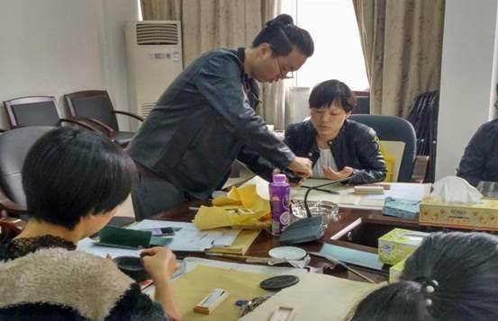 书法班学员们模仿着老师的动作,学习如何用砂纸擦拭砚台,如何磨墨,忙的不亦乐乎。
