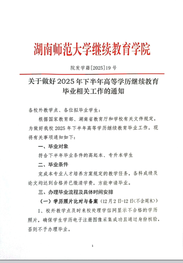 关于做好2025年下半年高等学历继续教育毕业相关工作的通知