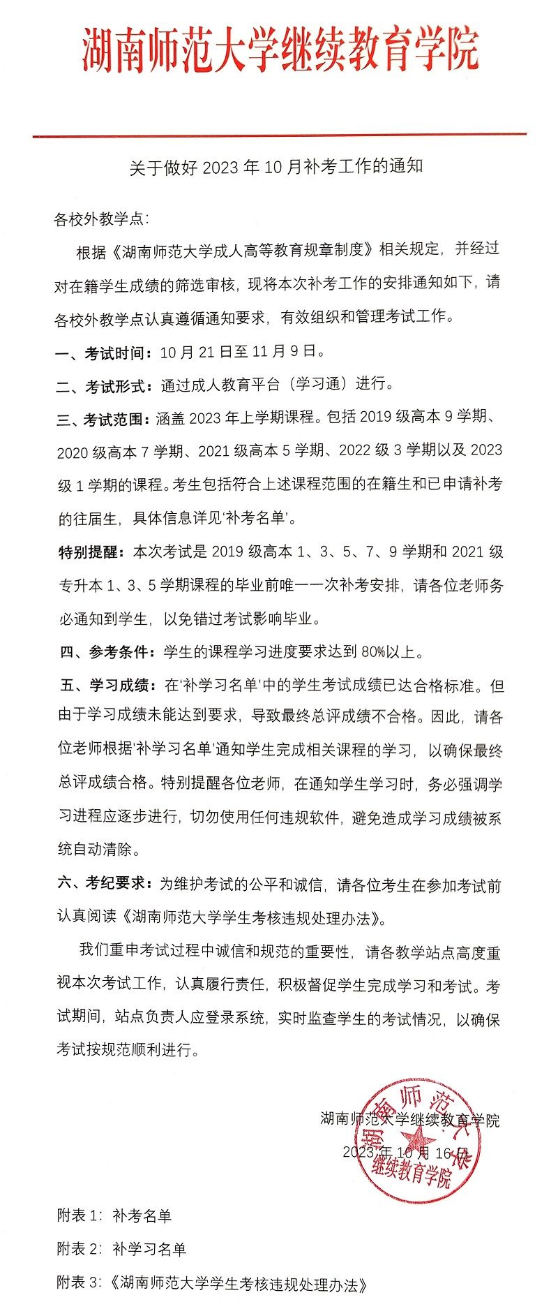 关于做好2023年10月补考工作的通知