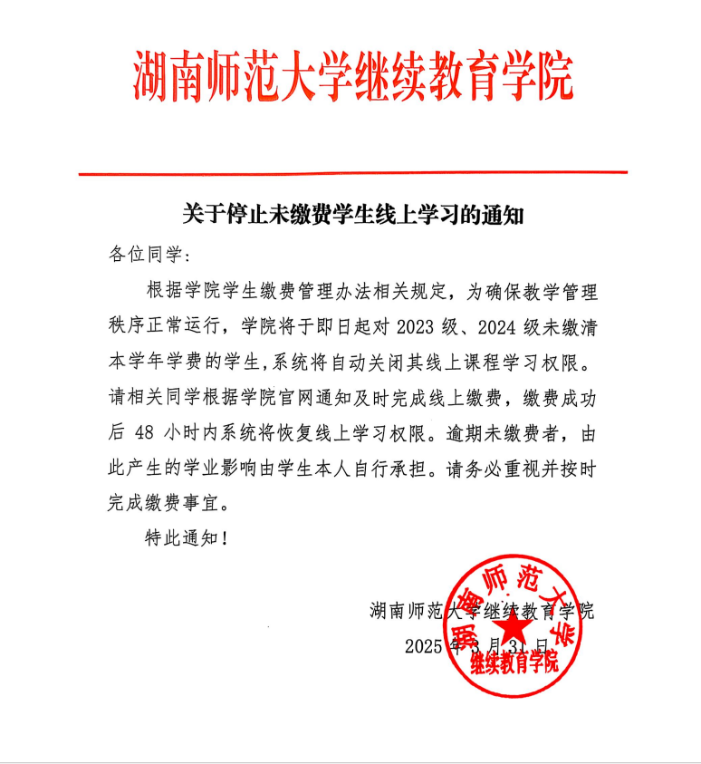 关于停止未缴费员工线上学习的通知