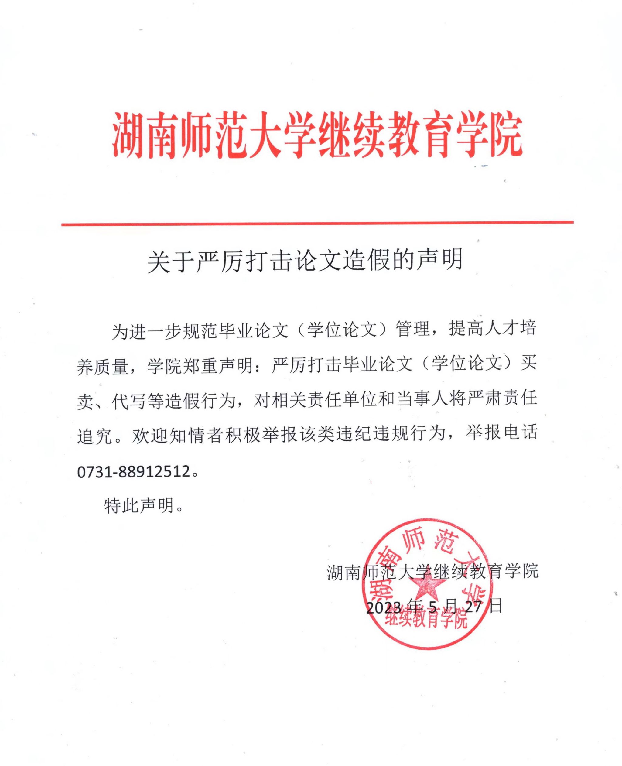 关于严厉打击论文造假的声明