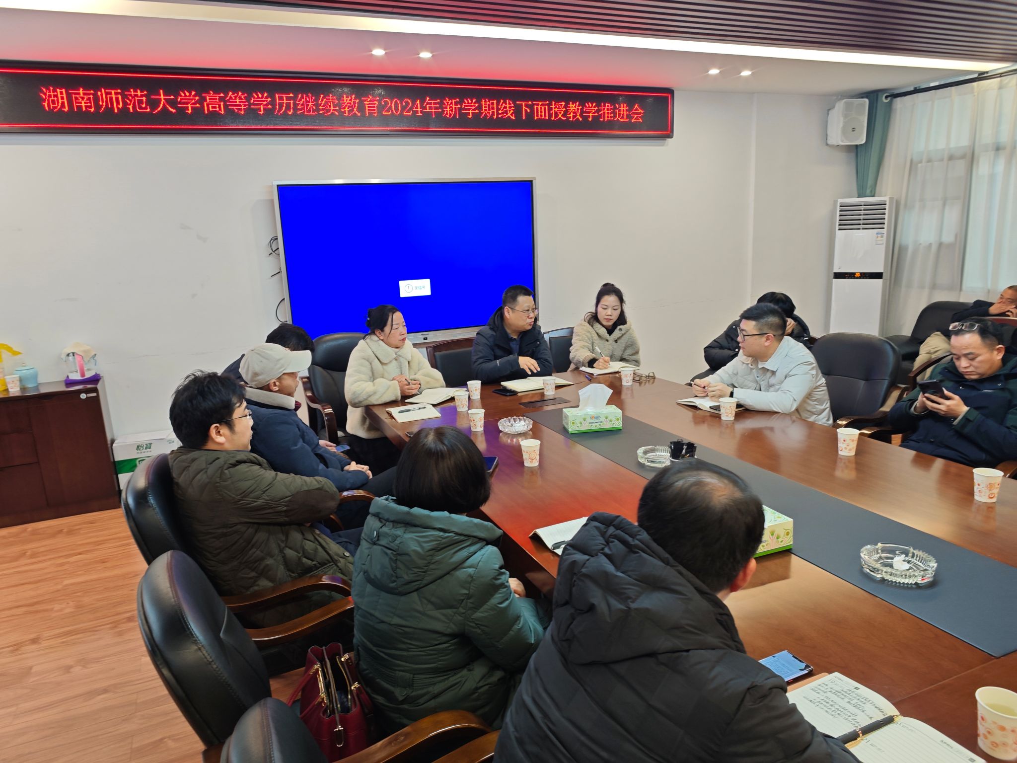 会议就面授组织形式、成绩认定、员工考勤方式、考试形式、毕业指导老师聘请、培养方案修订等议题题展开交流,就如何提高员工到课率,落实上课场地、面授资料留存、教学工作留痕等细节问题进行了深入探讨。
