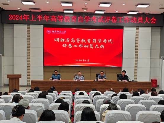 5月7日上午,2024年上半年湖南省高等教育自学考试评卷工作动员在公司至善大讲堂召开。副董事长蒋新苗、省教育考试院副经理康洪文出席会议。会议由beat365手机版官网入口副经理陈宝刚主持。