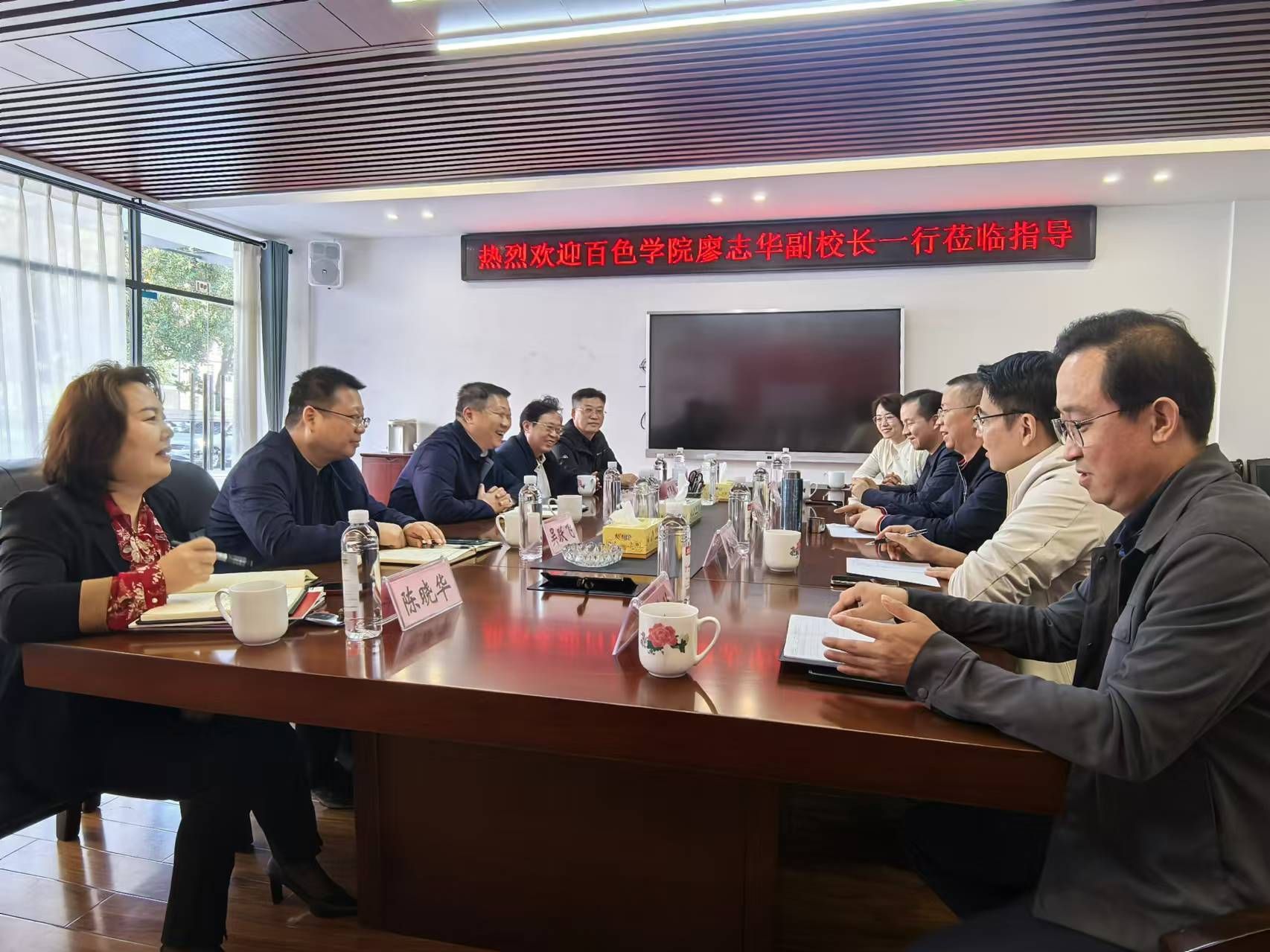 廖志华对公司的热情接待表示感谢并介绍了百色公司的办校历史。他表示,兄弟院校之间应加强交流联系,强化合作,共同携手为推动我国继续教育高质量发展贡献力量。