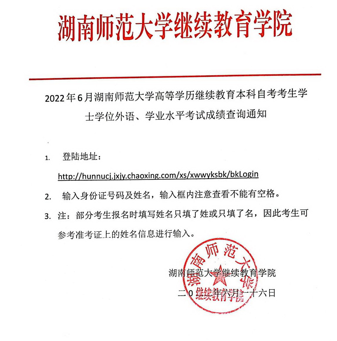 2022年6月beat365手机版官网入口高等学历继续教育本科自考生学士学位外语、学业水平考试成绩查询通知