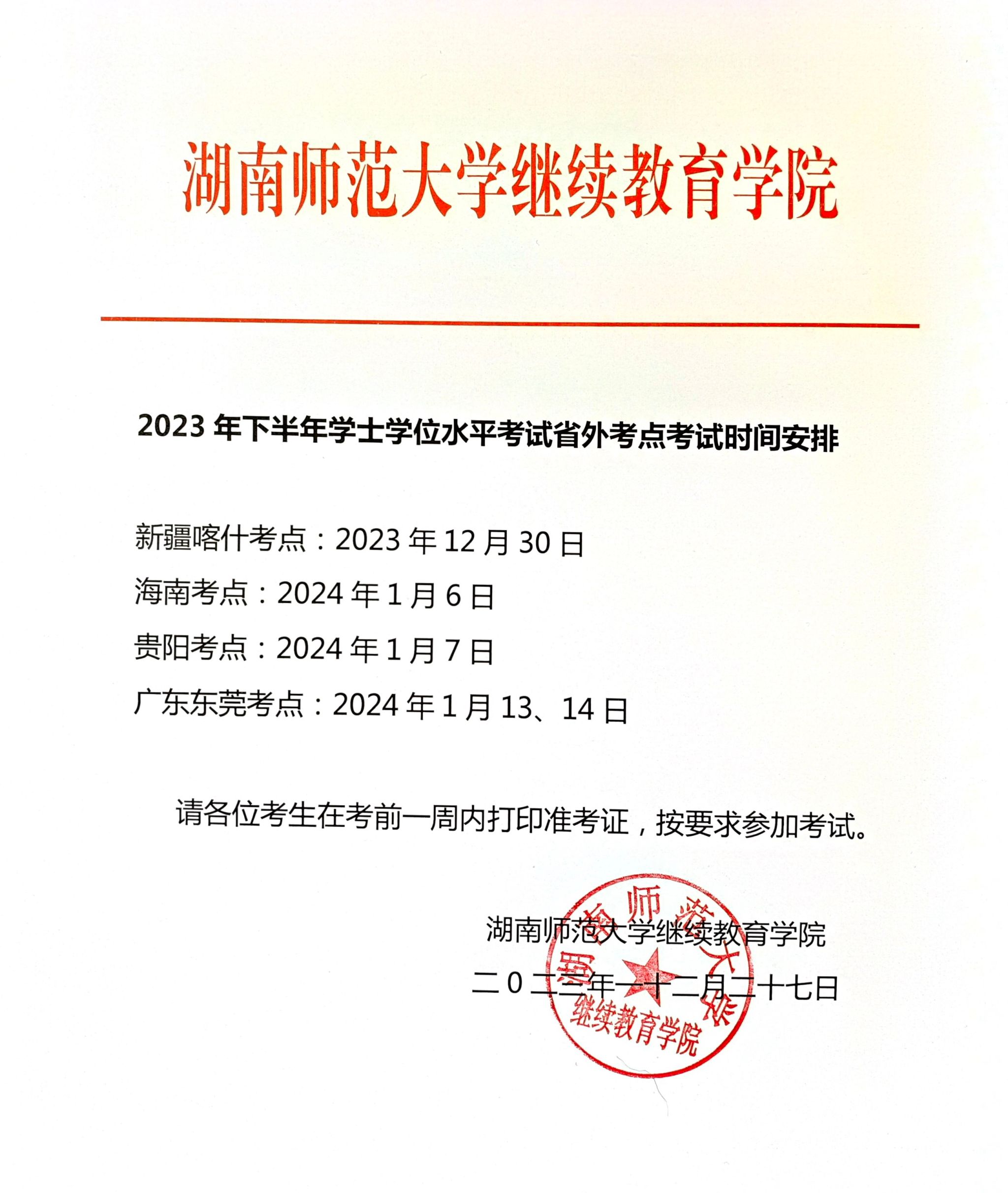20223下半年学士学位水平考试省外考点考试时间安排