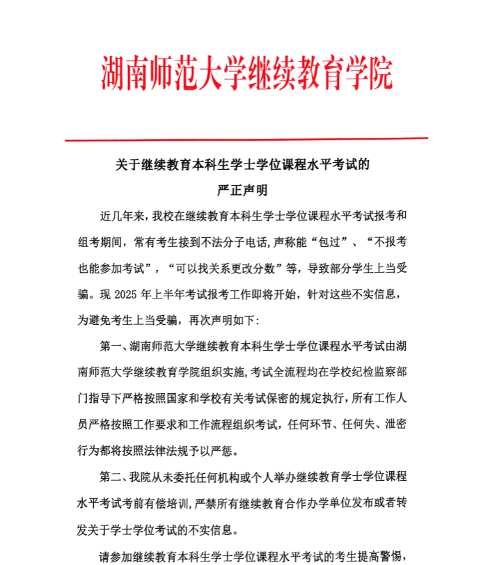 关于继续教育本科生学士学位课程水平考试的严正声明