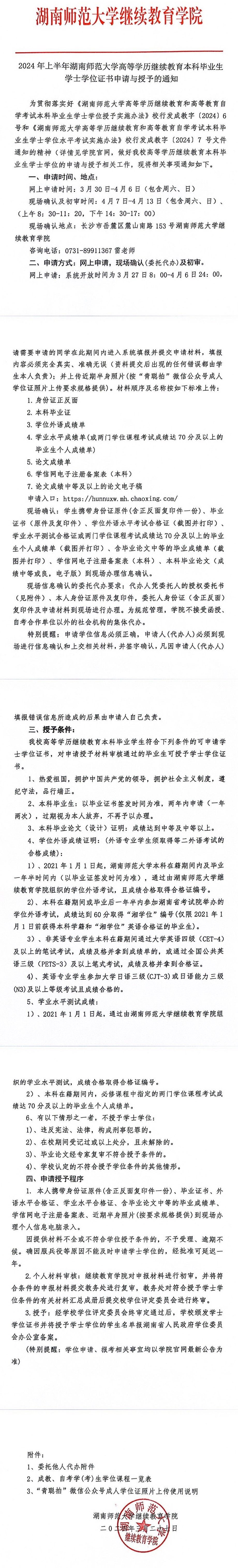 2024年上半年beat365手机版官网入口高等学历继续教育本科毕业生学士学位证书申请与授予的通知